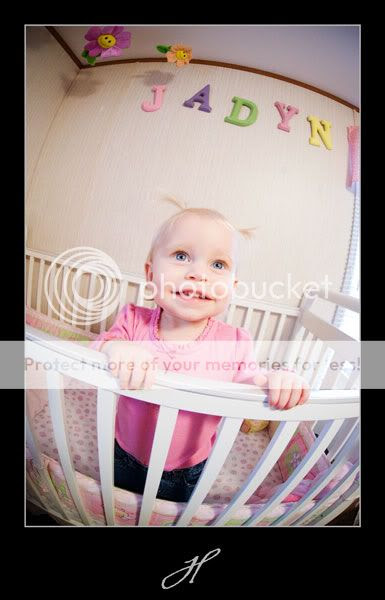 When I arrived, Jadyn was napping... and when she woke up, she was the cutest thing I have ever seen! I just love sleepy babies! First thing we had to do was get her trademark pigtails up!